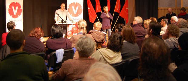 Den 6 februari arrangerade partiföreningen i Sundbyberg tillsammans med distriktet och ABF en kväll med Jonas Sjöstedt i Kulturcentrum i Hallonbergen. Precis som på så många andra ställen just nu så fick det bäras in mängder med extrastolar till den knökfulla salen. Ca 180 personer räknade de arrangerande från Sundbyberg till.