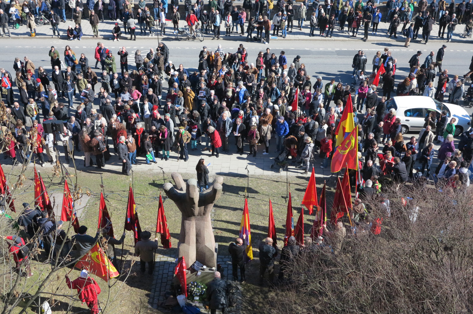 Solen strålade, med något undantag, under hela 1 maj i Stockholm. Redan på morgonen, när manifestationen till minne av stupade kamrater i Spanska inbördeskriget, inleddes var himlen klarblå och solen strålade som att det inte fanns någon morgondag. Manifestationen genomförs årligen till minne av de frivilliga som åkte till Spanien under inbördeskriget för att försvara demokratin och bekämpa fascismen.