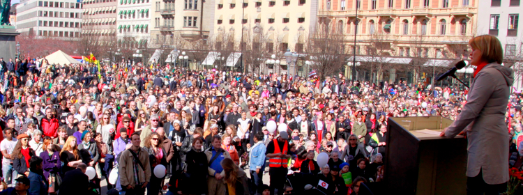 Inte bara i Stockholm utan också i Göteborg och Malmö slogs rekord i antalet deltagare i Vänsterpartiets 1 maj-tåg. Vänstern är på väg framåt och det syns i hela landet. Tack för att du deltog i Sveriges största 1:a maj-firande. Nästa år blir vi ännu fler! Om du ännu inte är medlem i Vänsterpartiet, ta chansen nu och gå med för att tillsammans med andra förändra samhället i mer rättvis riktning för socialism och människovärde. Klicka här för att gå med i Vänsterpartiet.