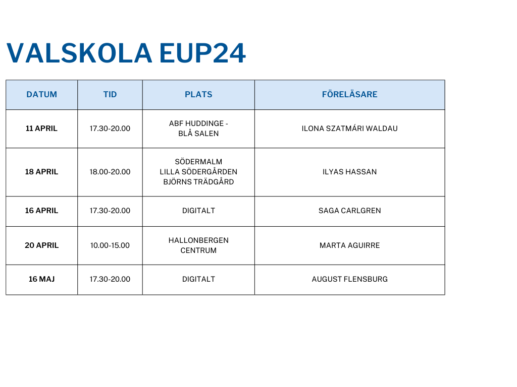 För att göra EU-valet till en vänsterframgång behöver vi alla hjälpas åt. Vi har aldrig varit så här många inför en valrörelse och det ska märkas. Valskolan ger dig grundläggande kunskap och verktyg för en framgångsrik valrörelse.